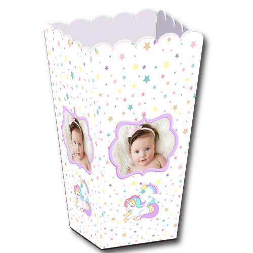 Unicorn Temalı Lila Çerçeveli - Popcorn Kutusu