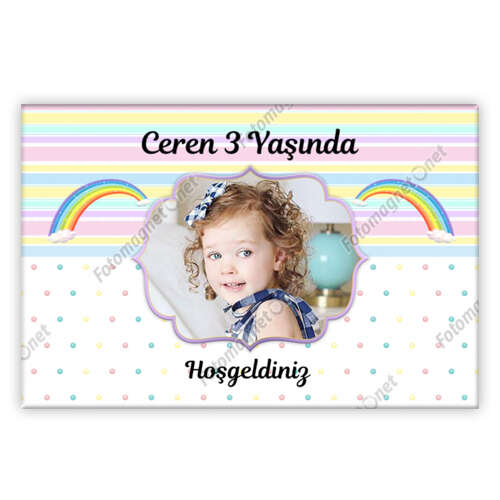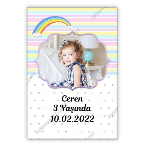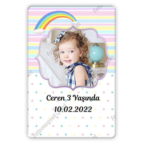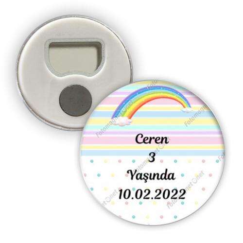 Gökkuşağı Temalı Renkli - Fotoğrafsız - Metal - Magnet - Açacak