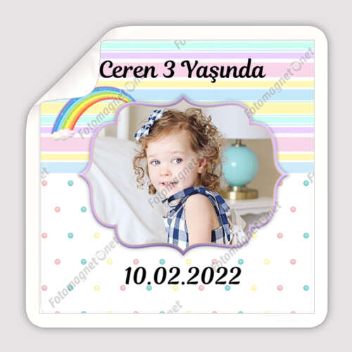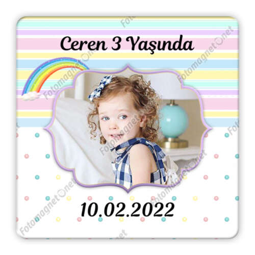 Gökkuşağı Temalı Renkli - Kare - Hatıra - Magnet