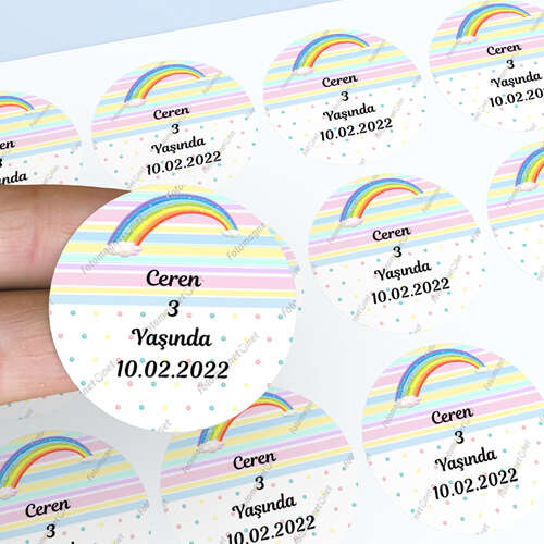 Gökkuşağı Temalı Renkli - Kare - Etiket -