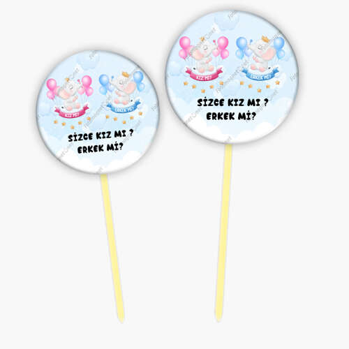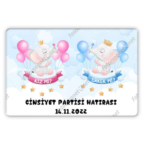 Cinsiyet Partisi - Temalı Sevimli Filler - Oval - Açacak - Magnet