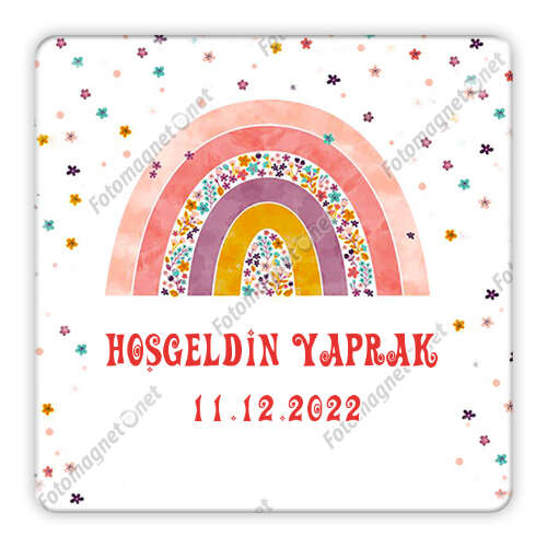 Gökkuşağı Ve Çiçekler Temalı - Kare - Hatıra - Magnet