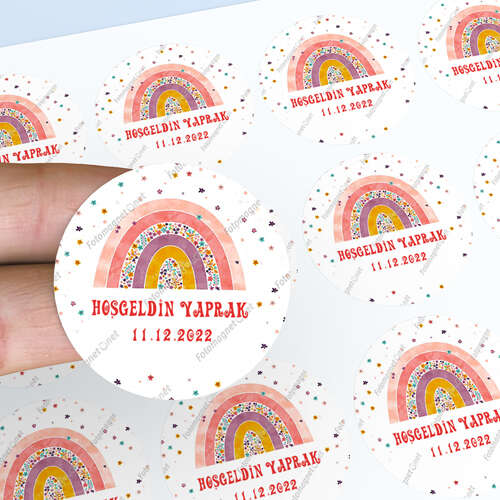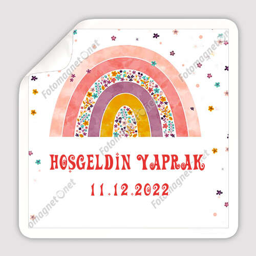 Gökkuşağı Ve Çiçekler Temalı - Kare - Etiket -