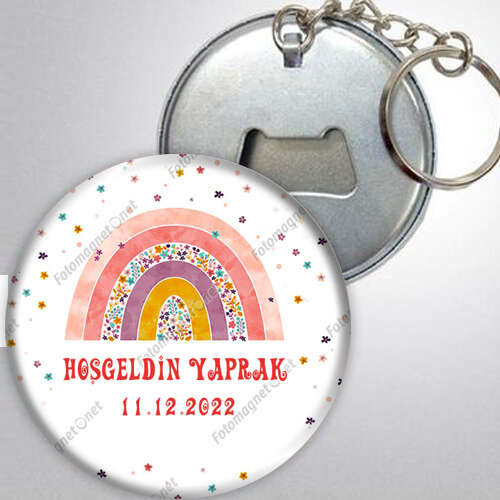 Gökkuşağı Ve Çiçekler Temalı - Metal - Açacak - Anahtarlık