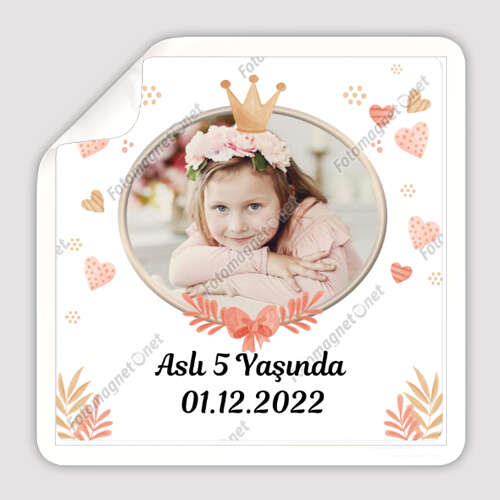 Prenses Temalı - Kare - Hatıra - Doğum Günü - Magnet
