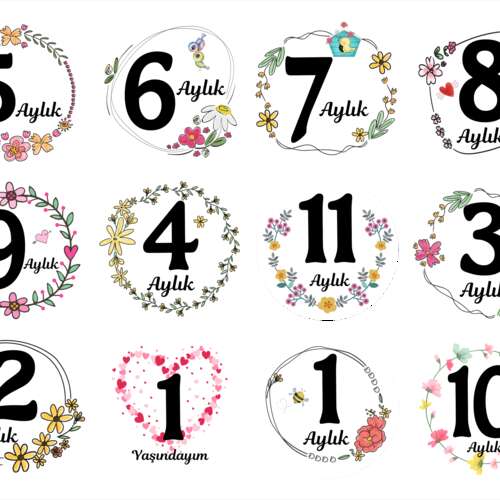 Aylık Bebek Foto Çekim Plakları 12li Set