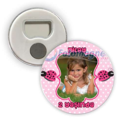 Pembe Uğur Böcekli Parti - Magnet - Açacak