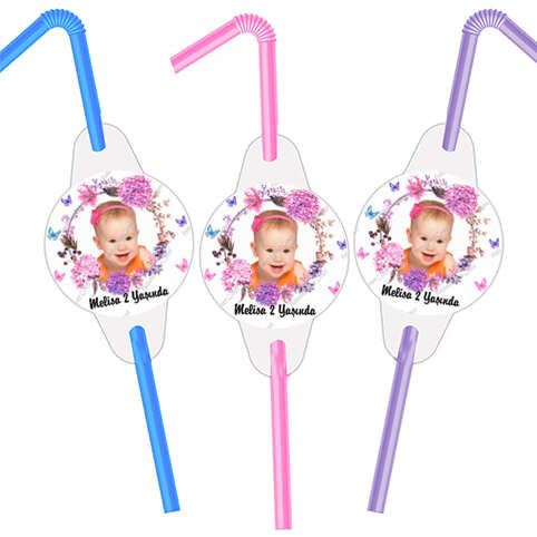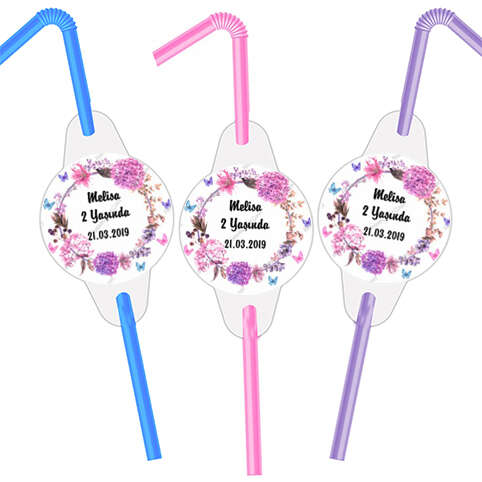 Pembe Mor Çiçek Temalı - Fotoğraflı - Pipet