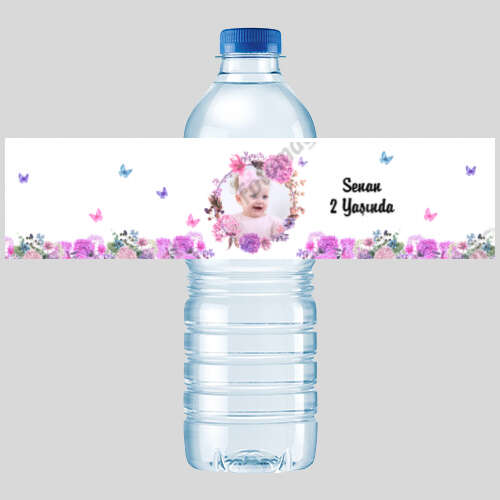 Pembe Mor Çiçek Temalı - Şişe Etiketi