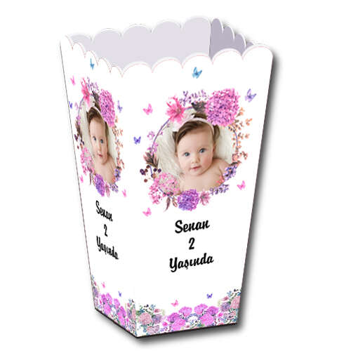 Pembe Mor Çiçek Temalı - Popcorn Kutusu