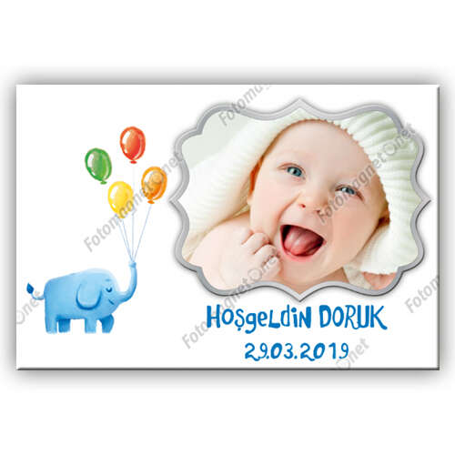 Balonlu Mavi Fil Temalı - Hoş Geldin Bebek - Metal - Açacak - Anahtarlık