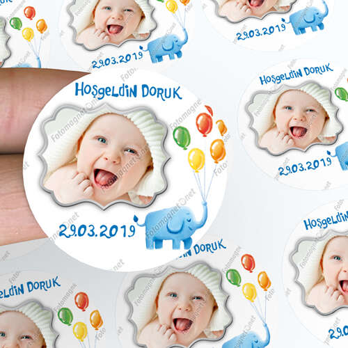 Balonlu Mavi Fil Temalı - Hoş Geldin Bebek - Sticker