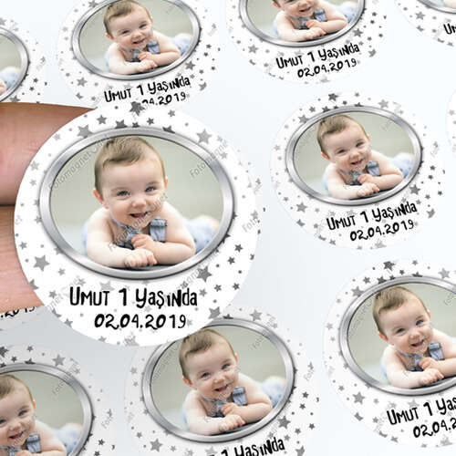 Gümüş Renk Yıldızlı - Fotoğrafsız - Sticker