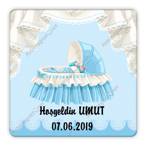 Mavi Beşik Temalı - Hoş Geldin Bebek - Kare - Hatıra - Magnet