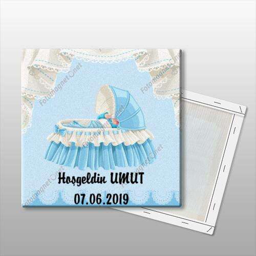 Mavi Beşik Temalı - Hoş Geldin Bebek - Kanvas Tablo