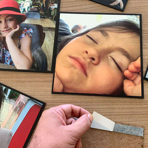 Ahşap Tablo Baskı Dekor - 8 Fotoğraflı - 38x38cm İpli Askılı