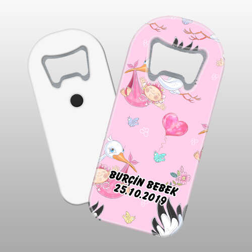 Leylek Ve Kız Bebek - Oval - Açacak - Magnet