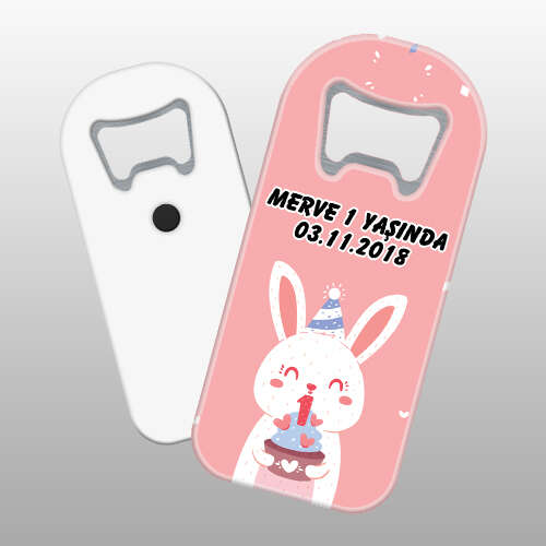 Sevimli Tavşancığın İlk - Doğum Günü - Temalı - Oval - Açacak - Magnet