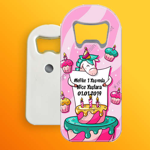 Unicorn Temalı Doğum Günü - Oval Şeklinde - Açacak - Magnet