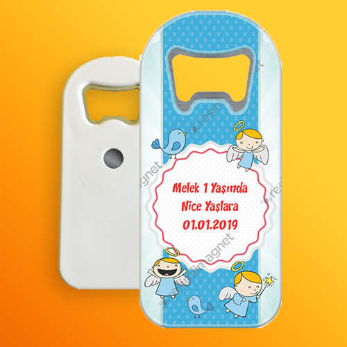 Melek Temalı Doğum Günü - Oval Şeklinde - Açacak - Magnet