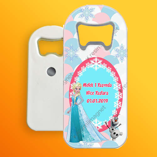 Elsa Temalı Doğum Günü - Oval Şeklinde - Açacak - Magnet