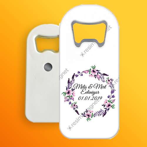 Mor Çiçek Temalı - Düğün - Nişan - Nikah - Oval Şeklinde - Magnet - Açacak