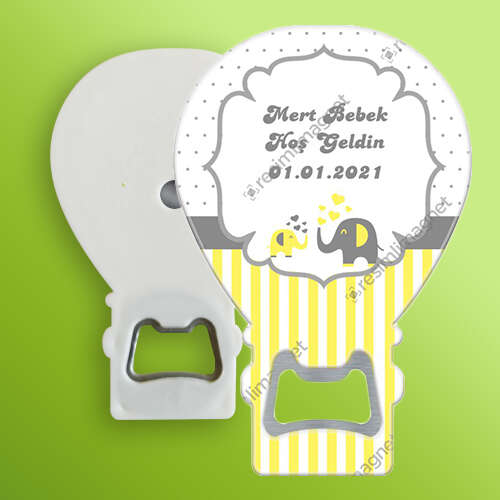 Sarı Gri Filli Temalı - Hoş Geldin Bebek - Uçan - Balon Şeklinde - Açacak - Magnet