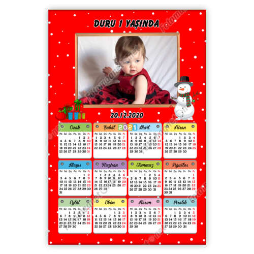 Kardan Adam Temalı Kırmızı 2024 Takvim Magnet