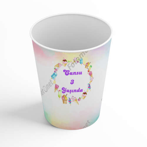 Dondurma Temalı - Karton Bardak - Sargı Etiketi