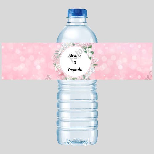 Pembe Beyaz Çiçek Çerçeveli - Şişe Etiketi