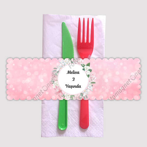Pembe Beyaz Çiçek Çerçeveli - Peçete Sargısı