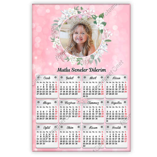 Pembe Beyaz Çiçek Çerçeveli 2024 Takvim Magnet