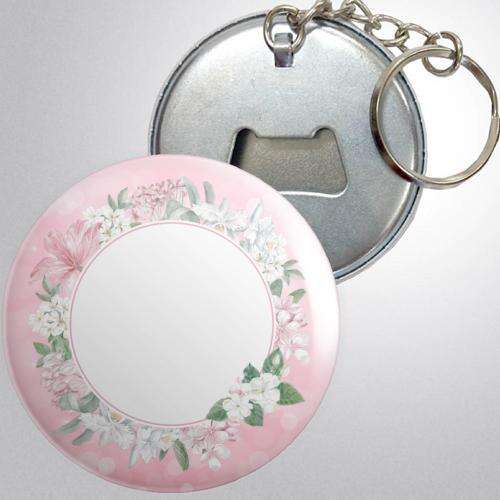 Pembe Beyaz Çiçek Çerçeveli - Fotoğrafsız - Metal - Açacak - Anahtarlık