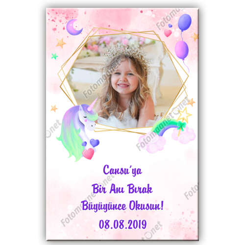 Unicorn Temalı Dore Çerçeveli - Banner - Flama - İkili