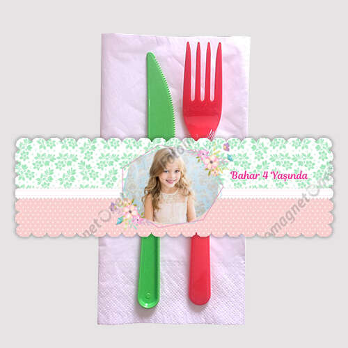 Pembe Yeşil Çiçek Temalı - Peçete Sargısı