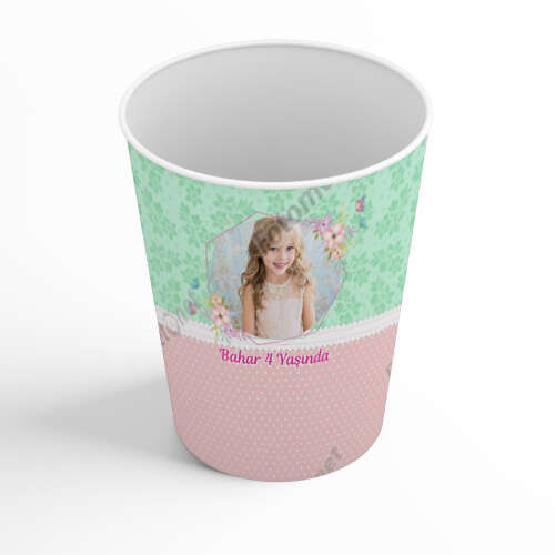 Pembe Yeşil Çiçek Temalı - Karton Bardak - Sargı Etiketi