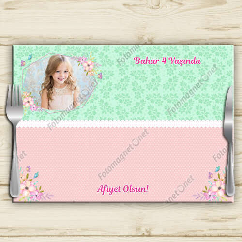 Pembe Yeşil Çiçek Temalı - Amerikan Servis