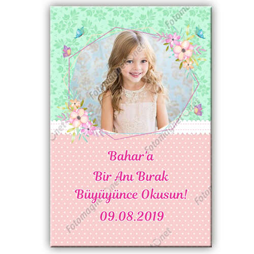 Pembe Yeşil Çiçek Temalı - Anı Kartı