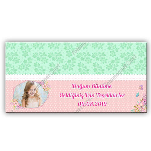 Pembe Yeşil Çiçek Temalı - Fotoğrafsız - Şişe Etiketi