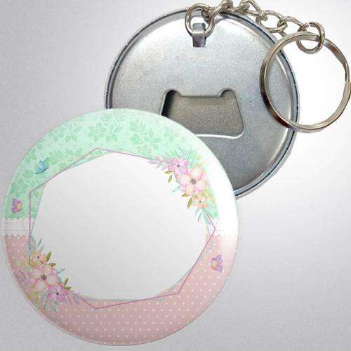 Pembe Yeşil Çiçek Temalı - Fotoğraflı - Metal - Açacak - Anahtarlık