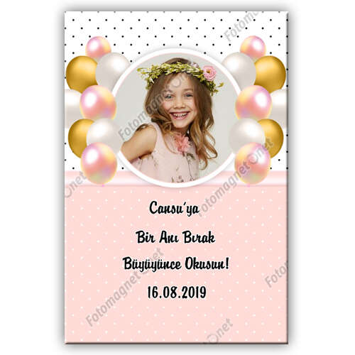 Pembe Dore Balonlar Temalı - Anı Kartı