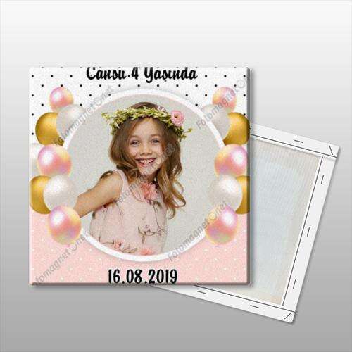 Pembe Dore Balonlar Temalı - Fotoğraflı - Kanvas Tablo