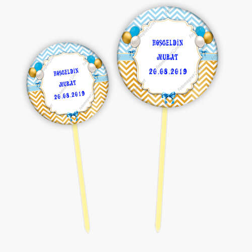 Mavi Dore Balonlu - Hoş Geldin Bebek - Fotoğrafsız - Kürdan Süs