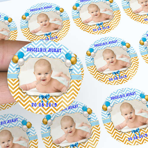 Mavi Dore Balonlu - Hoş Geldin Bebek - Fotoğraflı - Kürdan Bayrak