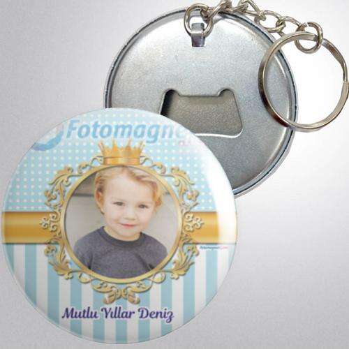 Gold Ve Mavi Prens Temalı - Fotoğraflı - Metal - Açacak - Anahtarlık
