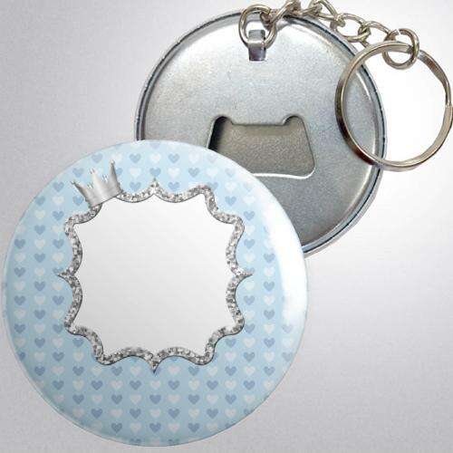 Gümüş Taçlı Mavi Kalpli - Fotoğrafsız - Metal - Açacak - Anahtarlık