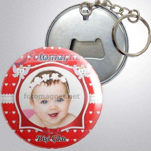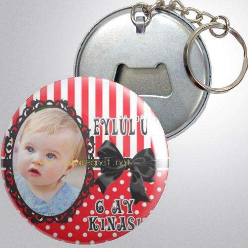 Kırmızı Puantiyeli - Fotoğraflı - Metal - Açacak - Anahtarlık