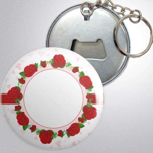 Kırmızı Gül Temalı - Fotoğraflı - Metal - Açacak - Anahtarlık