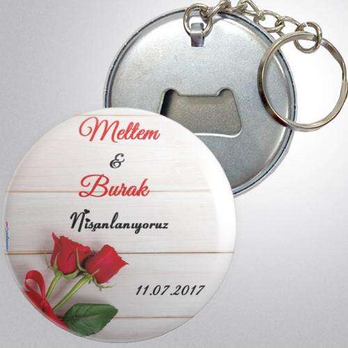 Kırmızı Gül Temalı Söz & Nişan - Metal - Açacak - Anahtarlık