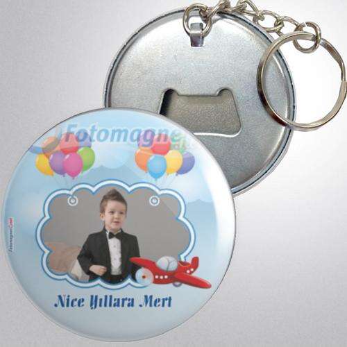 Kırmızı Uçak Temalı - Fotoğraflı - Metal - Açacak - Anahtarlık